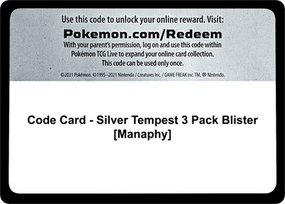 Code Card Silver Tempest 3 Pack Blister Manaphy — SWSH12: Silver Tempest | TCGSignal | TCGSignal