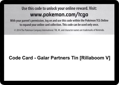 Code Card Galar Partners Tin Rillaboom V — SWSH01: Sword & Shield Base Set | TCGSignal | TCGSignal
