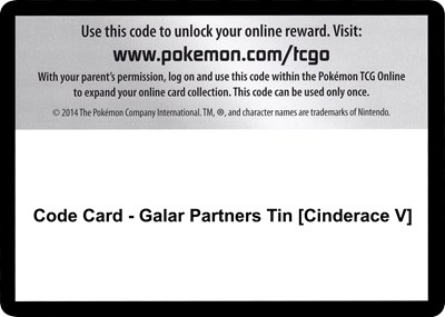 Code Card Galar Partners Tin Cinderace V — SWSH01: Sword & Shield Base Set | TCGSignal | TCGSignal