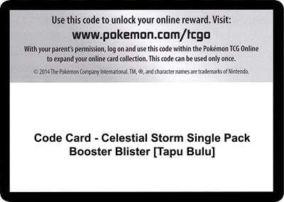 Code Card Celestial Storm Single Pack Booster Blister Tapu Bulu — SM - Celestial Storm | TCGSignal | TCGSignal
