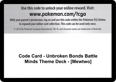 Code Card Unbroken Bonds Battle Minds Theme Deck Mewtwo — SM - Unbroken Bonds | TCGSignal | TCGSignal