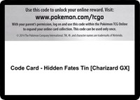 Code Card Hidden Fates Tin Charizard GX