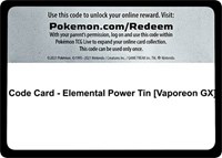 Code Card Eevee Evolutions Tin Vaporeon V
