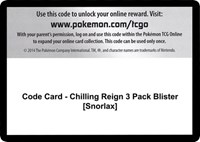 Code Card Chilling Reign 3 Pack Blister Snorlax